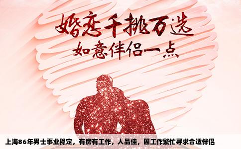 在繁华的上海,有一位出生于1986年的男士,他拥有稳定的工作、自己的住房,且人品得到广泛认可。由于工作过于繁忙,他无暇顾及传统的相亲方式,于是选择在此寻求一位合适的伴侣。